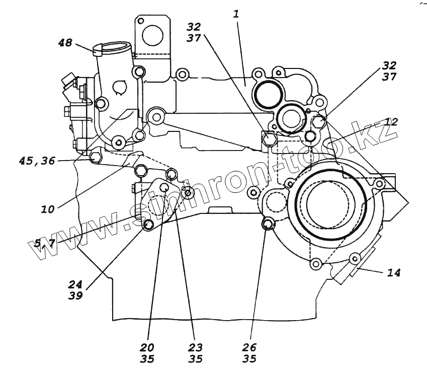 Каталог запасных частей к технике: Камский автозавод 6522. Установка корпуса водяных каналов