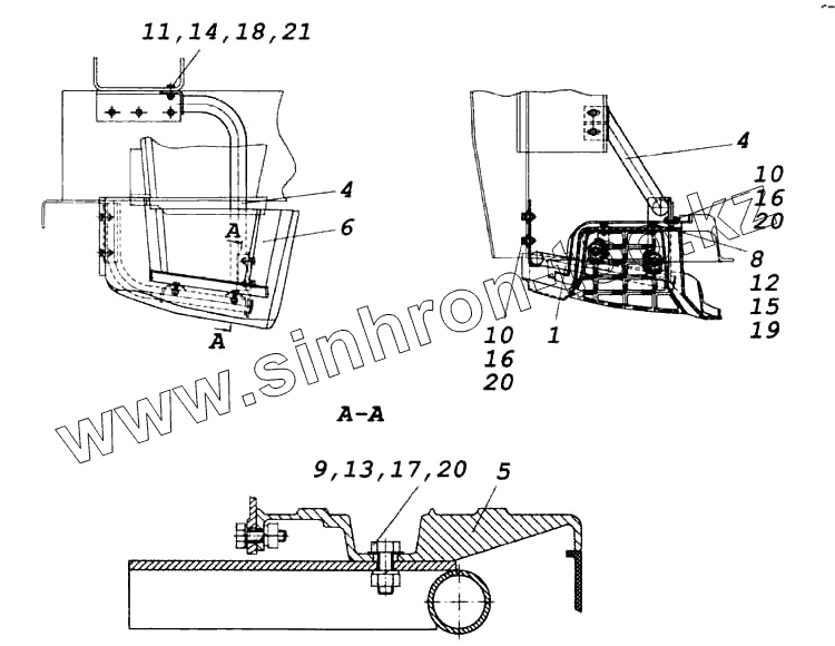 Каталог запасных частей к технике: Камский автозавод 6522. Установка нижней подножки правая/левая