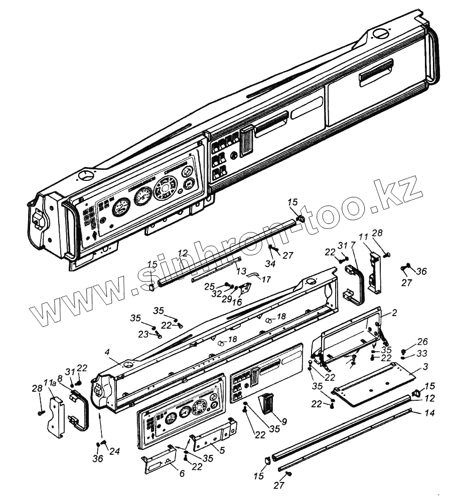 Каталог запасных частей к технике: Камский автозавод 6522. Установка панели приборов
