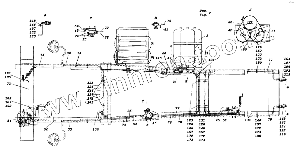 Каталог запасных частей к технике: Камский автозавод 6522. Установка пневмотормозов