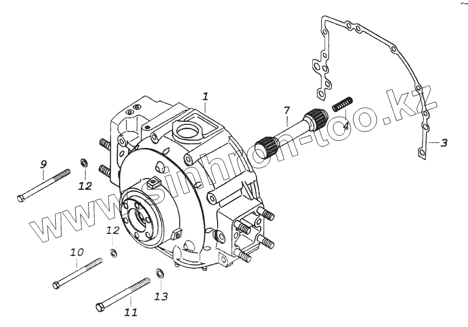 Каталог запасных частей к технике: Камский автозавод 6522. Установка привода отбора мощности переднего