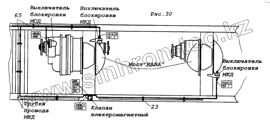 Каталог запасных частей к технике: Камский автозавод 6522. Установка проводов на шасси