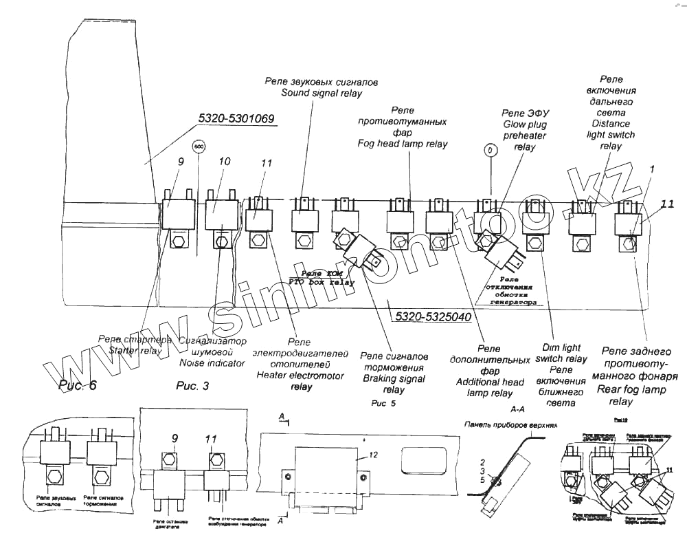 Каталог запасных частей к технике: Камский автозавод 6522. Установка реле