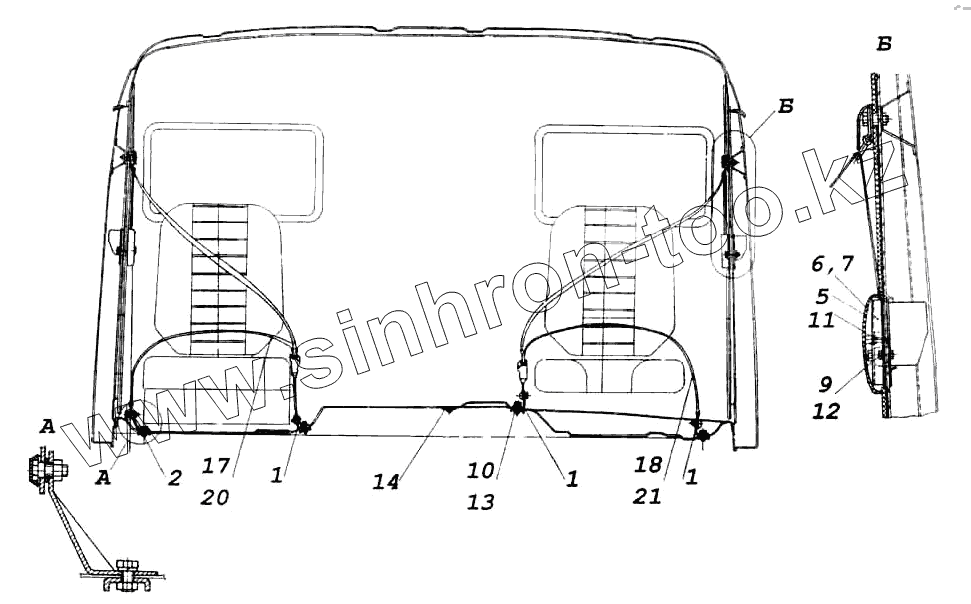 Каталог запасных частей к технике: Камский автозавод 6522. Установка ремней безопасности