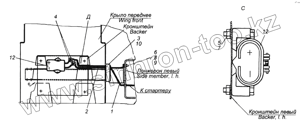 Каталог запасных частей к технике: Камский автозавод 6522. Установка розетки внешнего запуска