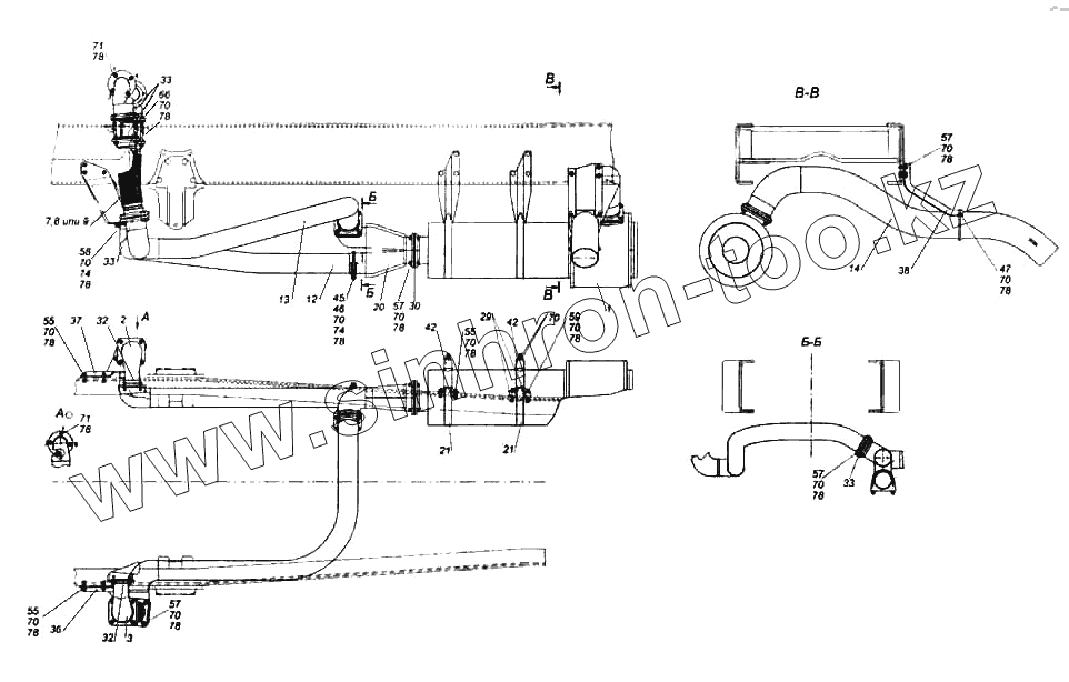 Каталог запасных частей к технике: Камский автозавод 6522. Установка системы выпуска