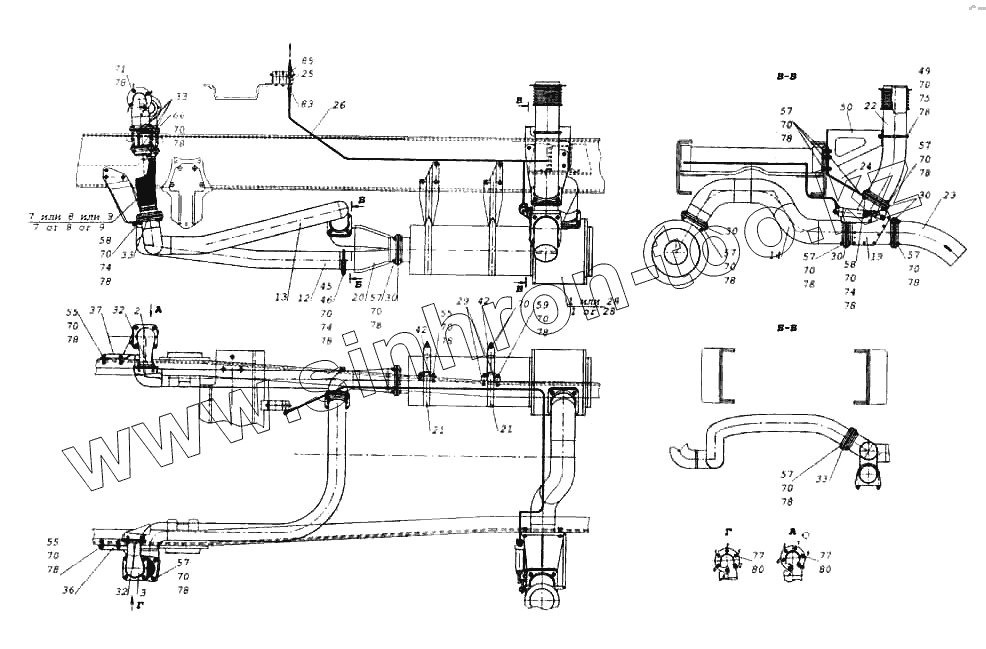 Каталог запасных частей к технике: Камский автозавод 6522. Установка системы выпуска