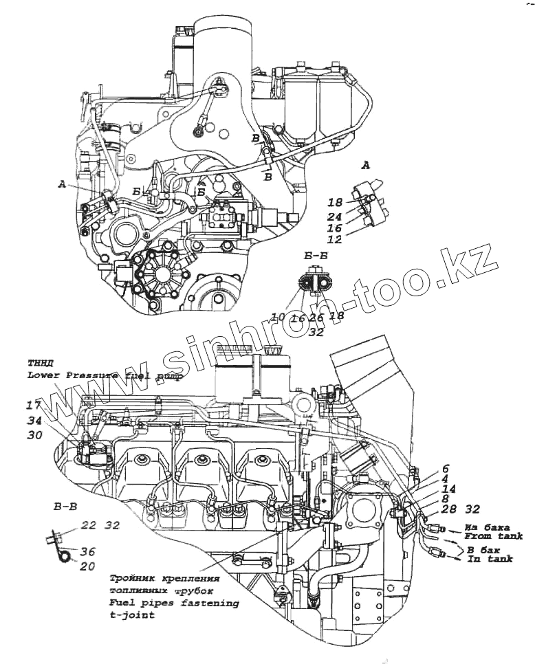 Каталог запасных частей к технике: Камский автозавод 6522. Установка топлипроводов