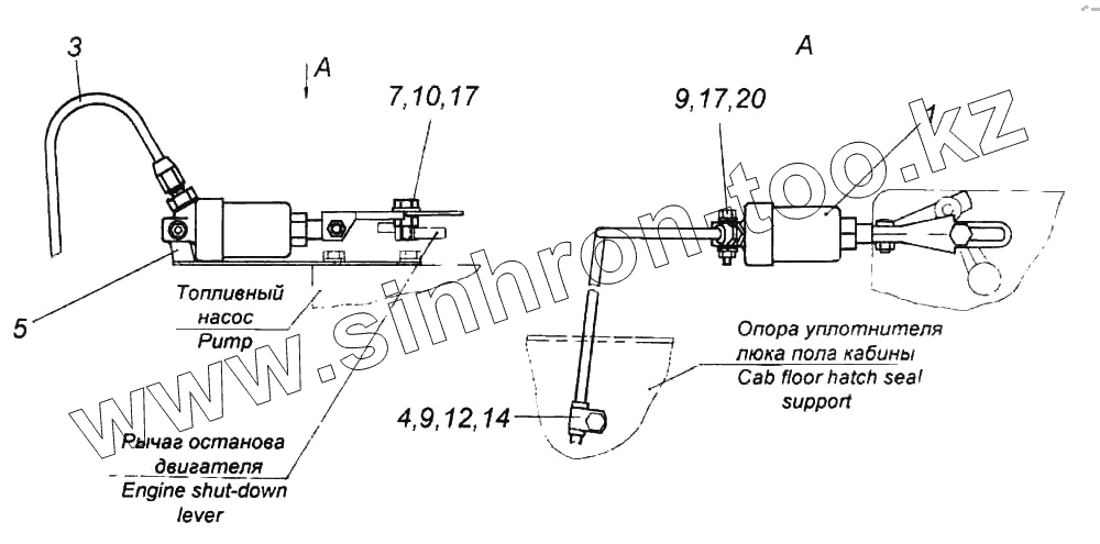 Каталог запасных частей к технике: Камский автозавод 6522. Установка цилиндра выключения подачи топлива