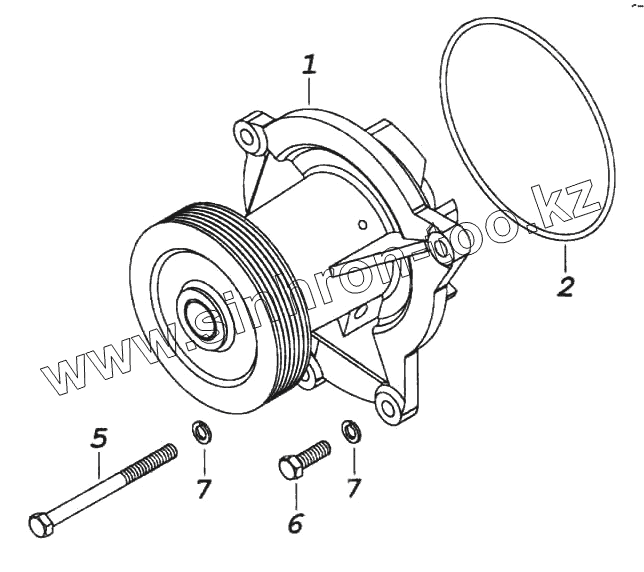 Каталог запасных частей к технике: Камский автозавод 6522. Установка водяного насоса