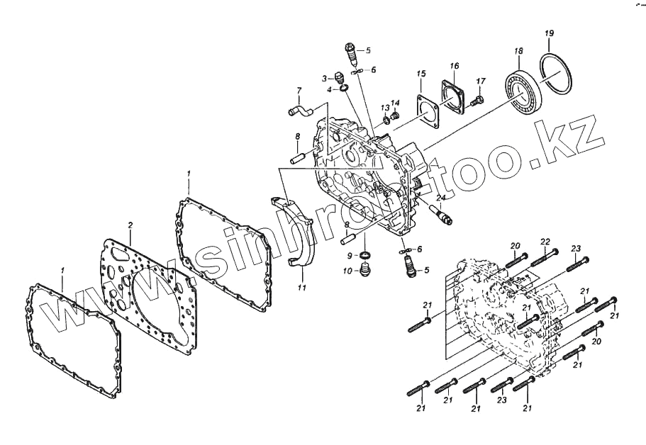 Каталог запасных частей к технике: Камский автозавод 6522. Установка задней крышки картера