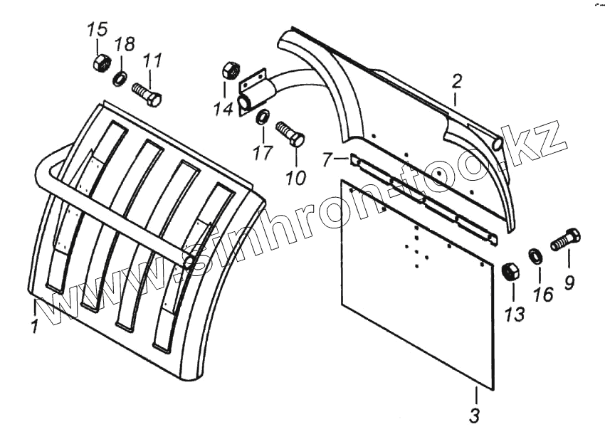 Каталог запасных частей к технике: Камский автозавод 6522. Установка задних крыльев