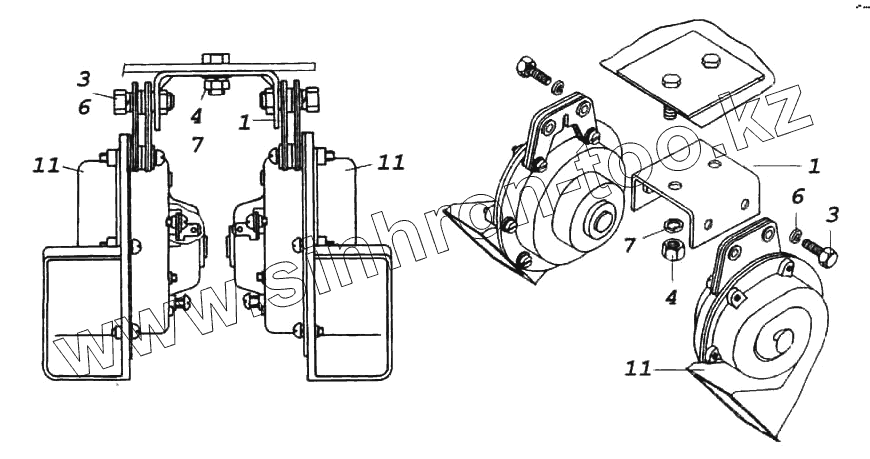 Каталог запасных частей к технике: Камский автозавод 6522. Установка звуковых электрических сигналов