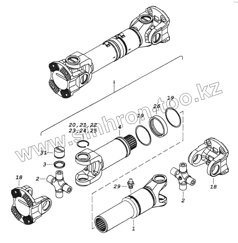 Каталог запасных частей к технике: Камский автозавод 6522. Вал карданный заднего моста