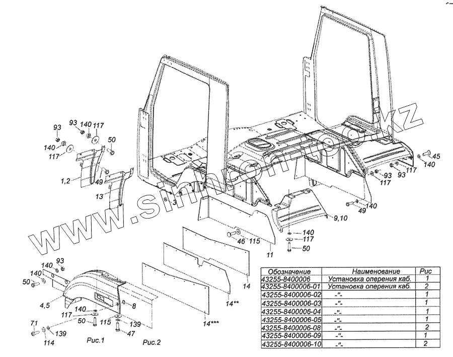Каталог запасных частей к технике: Камский автозавод 6522 (Евро-4). 43255-8400006 Установка оперения кабины