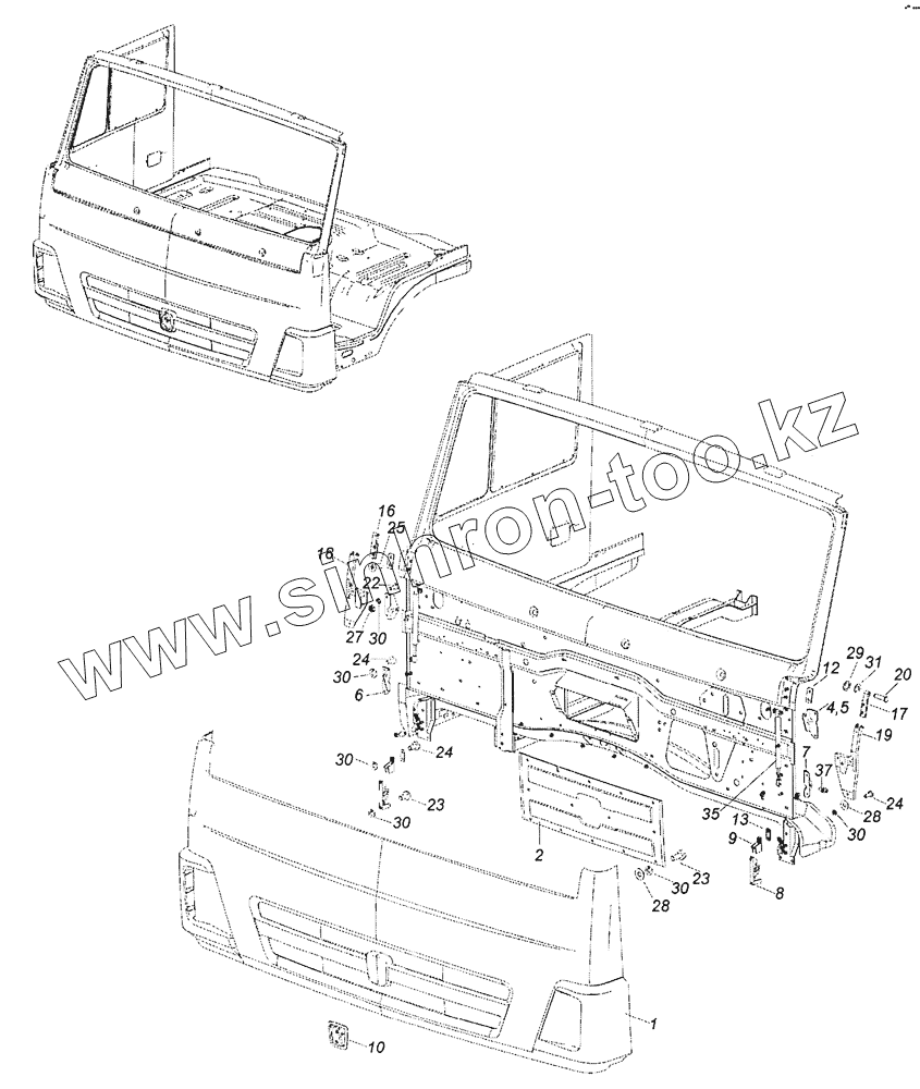 Каталог запасных частей к технике: Камский автозавод 6522 (Евро-4). 63501-8401009 Установка облицовочной панели