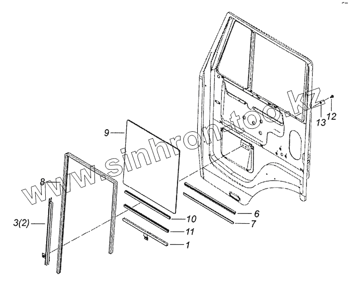 Каталог запасных частей к технике: Камский автозавод 6522 (Евро-4). 65115-6110005 Установка опускных стекол