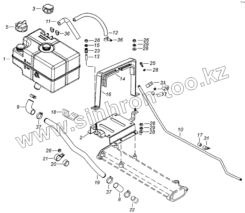 Каталог запасных частей к технике: Камский автозавод 6522 (Евро-4). 65222-1311005 Установка расширительного бачка