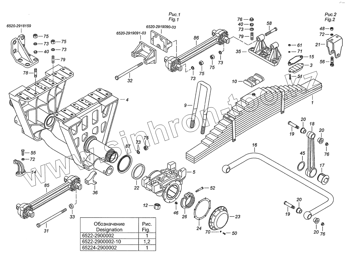 Каталог запасных частей к технике: Камский автозавод 6522 (Евро-4). 6522-2900002 Установка задней подвески