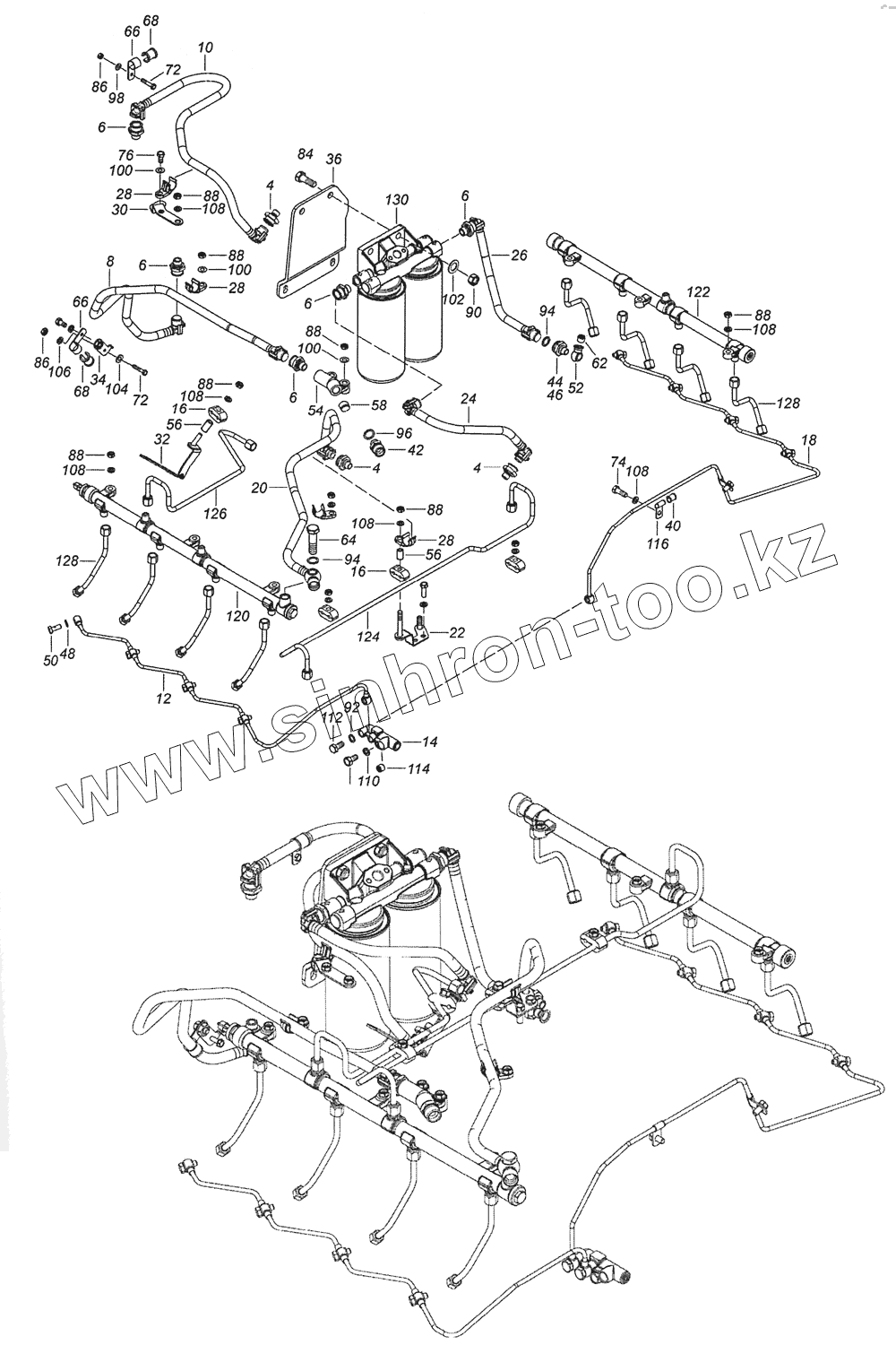 Каталог запасных частей к технике: Камский автозавод 6522 (Евро-4). 740.70-1104000 Установка топливопроводов