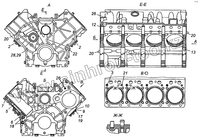 Каталог запасных частей к технике: Камский автозавод 6540. Блок цилиндров в сборе