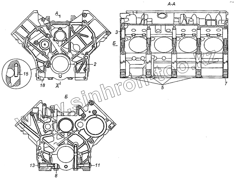 Каталог запасных частей к технике: Камский автозавод 6540. Блок цилиндров в сборе