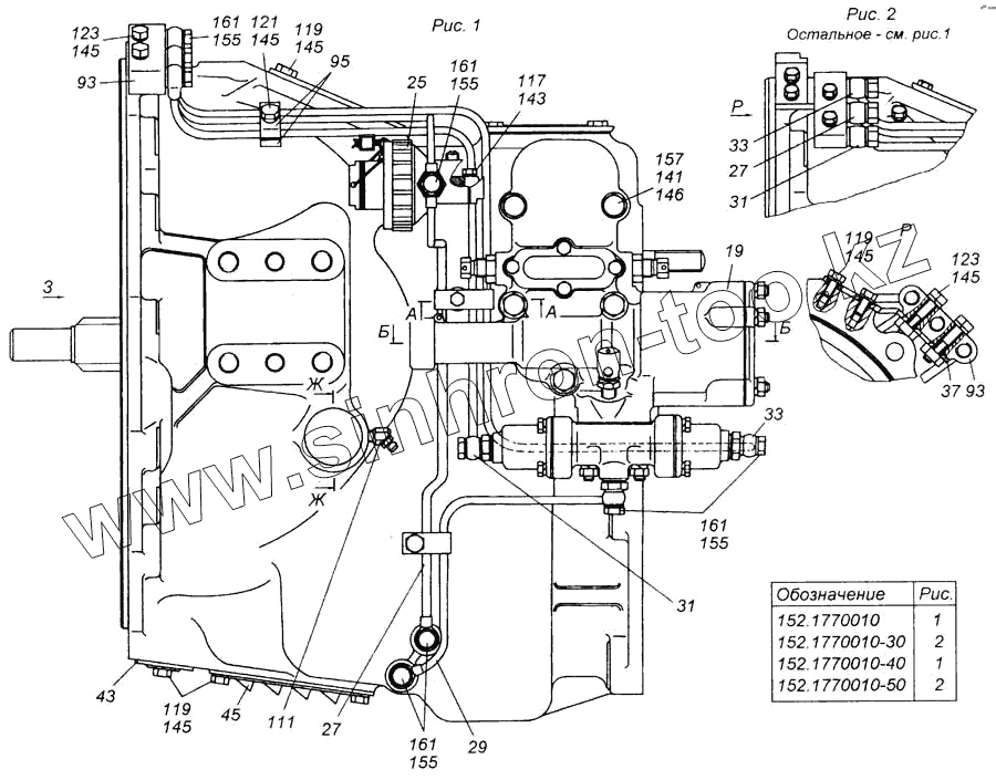 Каталог запасных частей к технике: Камский автозавод 6540. Делитель передач с управлением в сборе