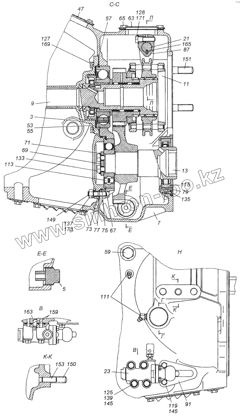 Каталог запасных частей к технике: Камский автозавод 6540. Делитель передач с управлением в сборе