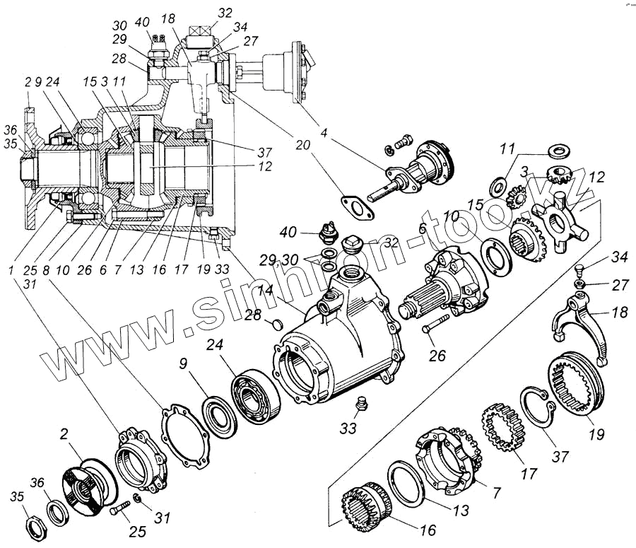 Каталог запасных частей к технике: Камский автозавод 6540. Дифференциал межосевой в сборе