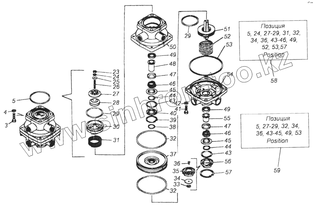 Каталог запасных частей к технике: Камский автозавод 6540. Кран тормозной двухсекционный с педалью