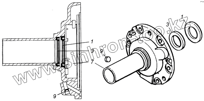 Каталог запасных частей к технике: Камский автозавод 6540. Крышка подшипника первичного вала в сборе