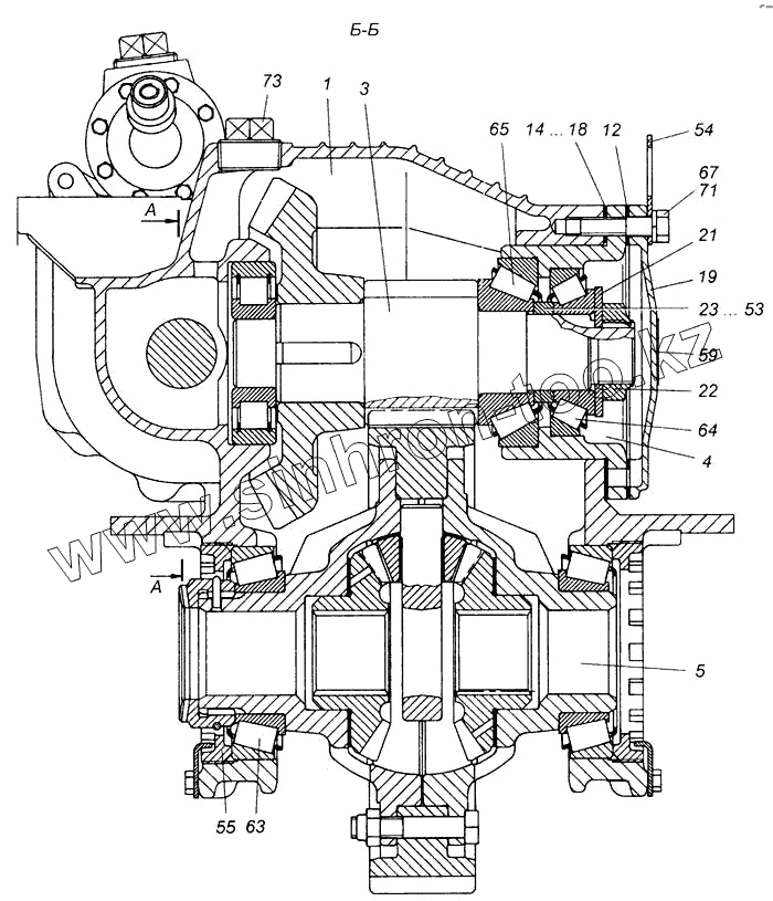 Каталог запасных частей к технике: Камский автозавод 6540. Передача главная промежуточного моста в сборе