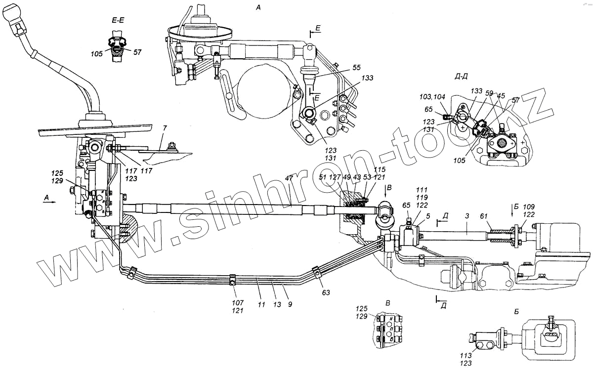 Каталог запасных частей к технике: Камский автозавод 6540. Привод управления механизмом переключения передач
