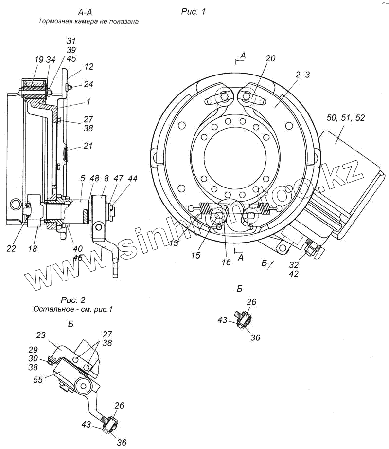 Каталог запасных частей к технике: Камский автозавод 6540. Тормоз задний левый в сборе