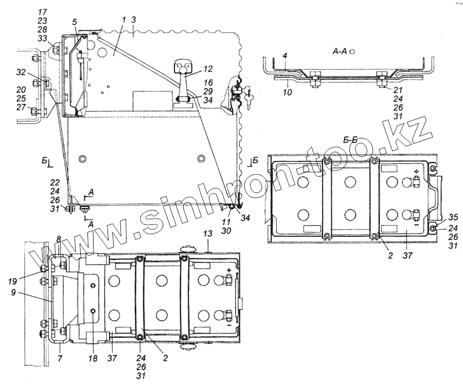 Каталог запасных частей к технике: Камский автозавод 6540. Установка аккумуляторных батарей