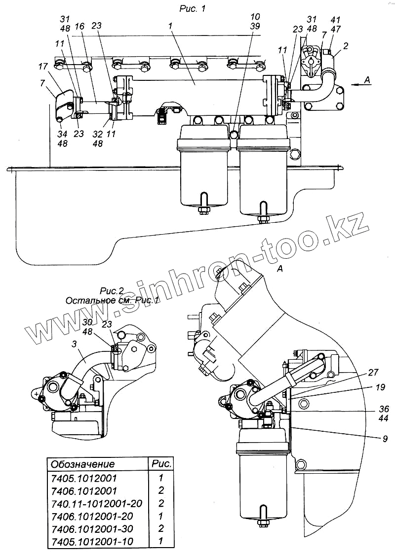 Каталог запасных частей к технике: Камский автозавод 6540. Установка фильтра и теплообменника