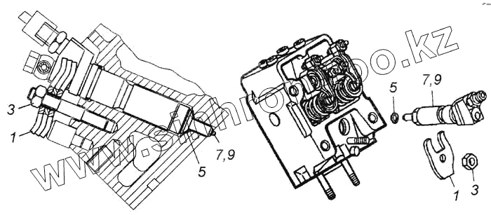 Каталог запасных частей к технике: Камский автозавод 6540. Установка форсунки