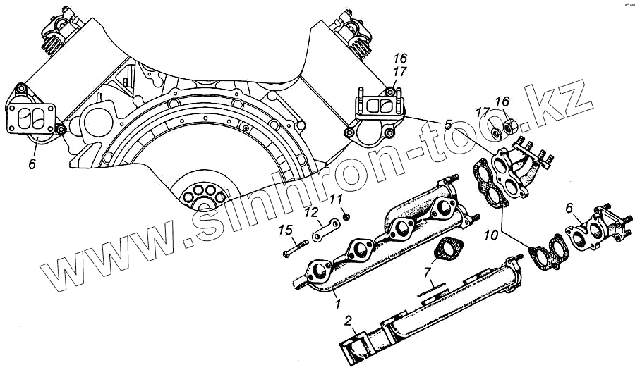 Каталог запасных частей к технике: Камский автозавод 6540. Установка газопровода