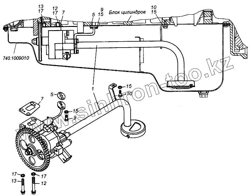 Каталог запасных частей к технике: Камский автозавод 6540. Установка масляного насоса
