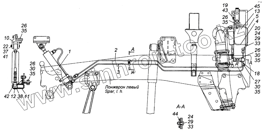 Каталог запасных частей к технике: Камский автозавод 6540. Установка механизма опрокидывания кабины