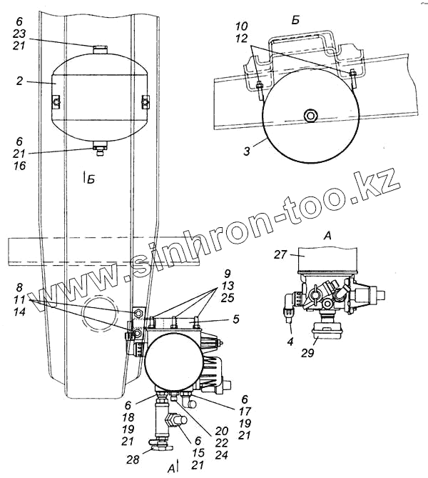 Каталог запасных частей к технике: Камский автозавод 6540. Установка осушителя