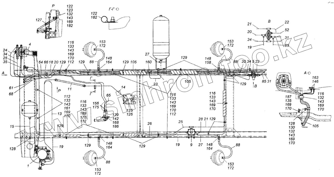 Каталог запасных частей к технике: Камский автозавод 6540. Установка пневмотормозов