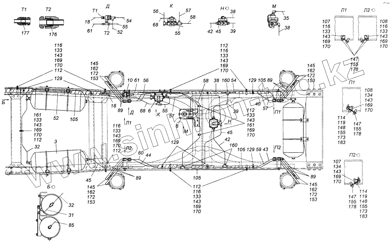 Каталог запасных частей к технике: Камский автозавод 6540. Установка пневмотормозов