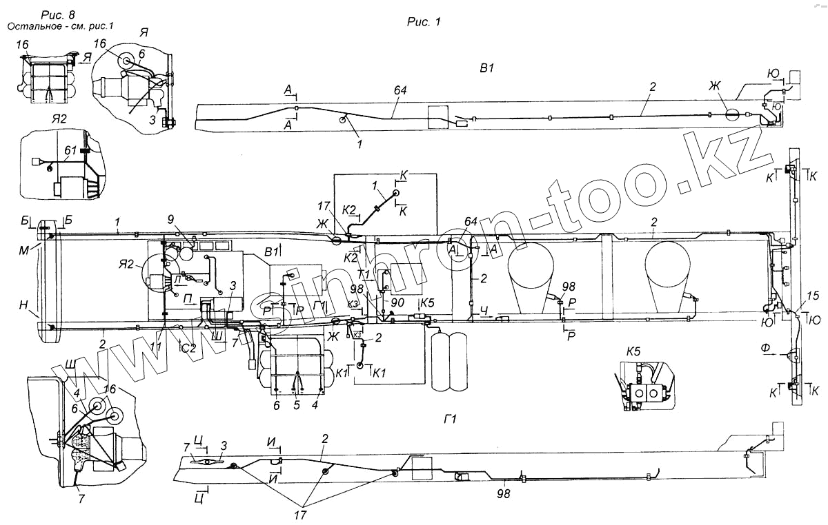 Каталог запасных частей к технике: Камский автозавод 6540. Установка проводов на шасси