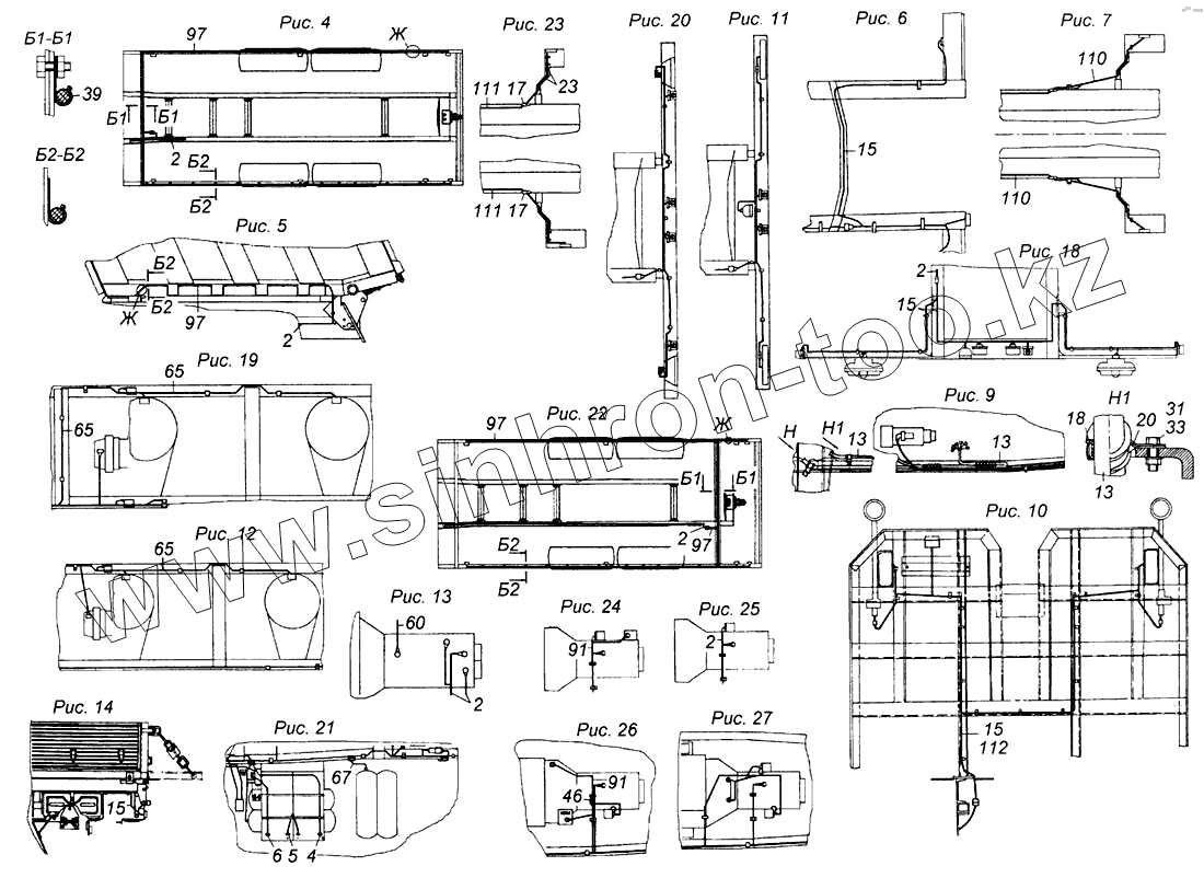 Каталог запасных частей к технике: Камский автозавод 6540. Установка проводов на шасси