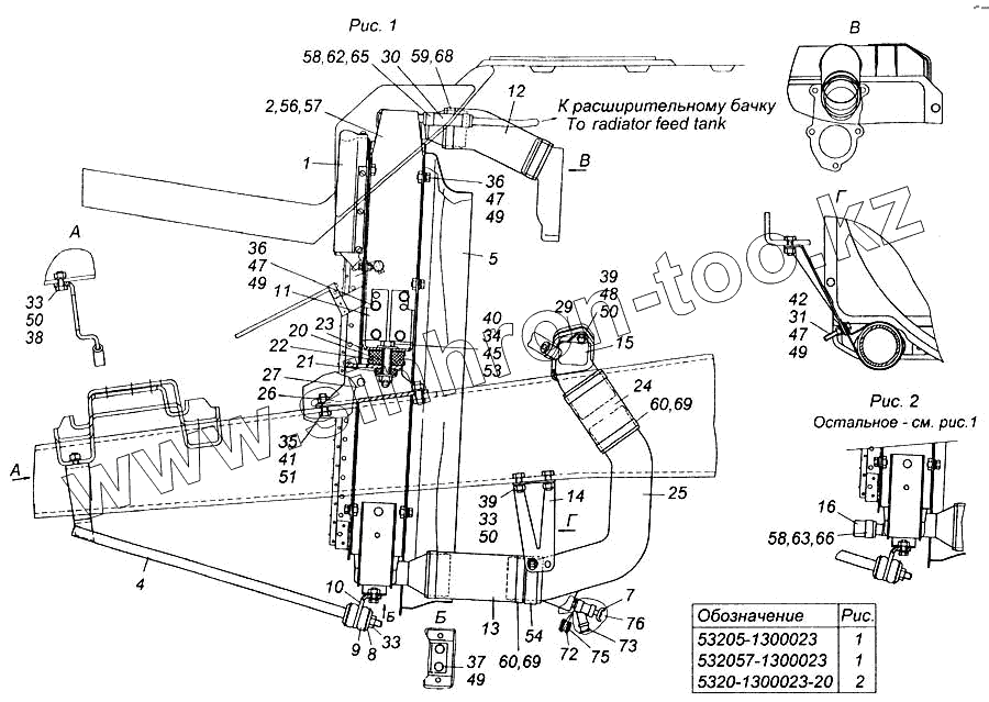 Каталог запасных частей к технике: Камский автозавод 6540. Установка радиатора