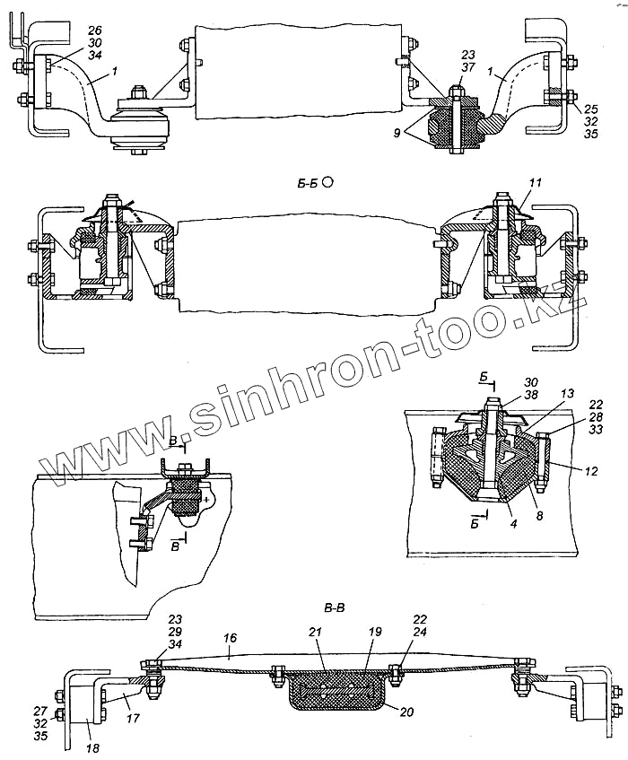 Каталог запасных частей к технике: Камский автозавод 6540. Установка силового агрегата
