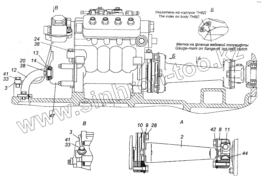 Каталог запасных частей к технике: Камский автозавод 6540. Установка ТНВД