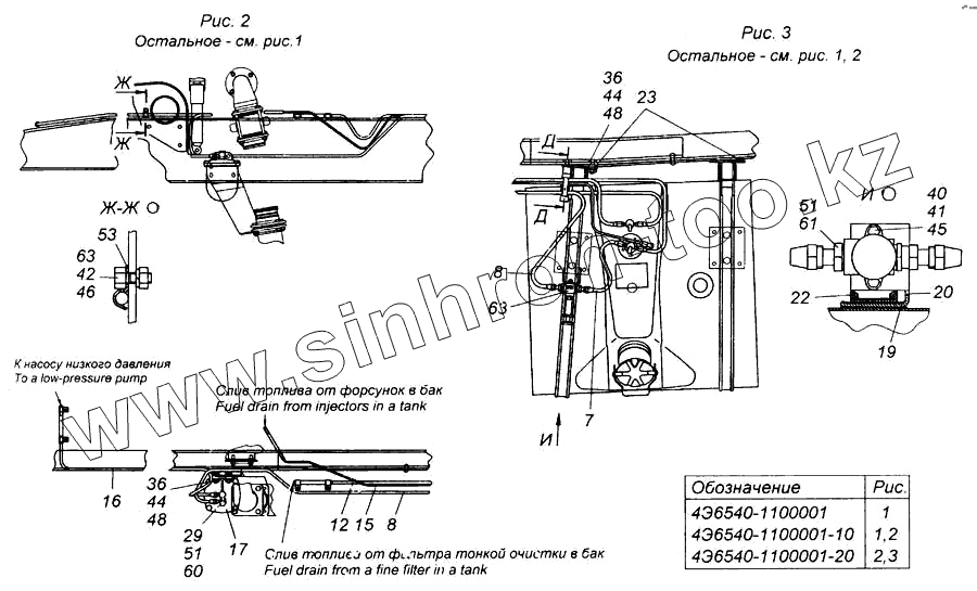 Каталог запасных частей к технике: Камский автозавод 6540. Установка топливного бака, ФГОТ и топливопроводов