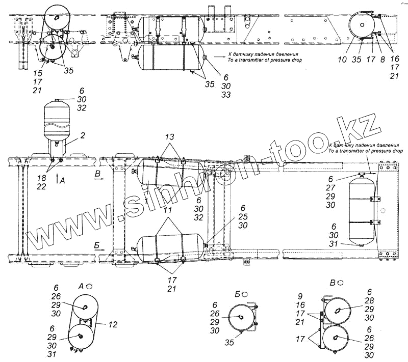 Каталог запасных частей к технике: Камский автозавод 6540. Установка воздушных ресиверов